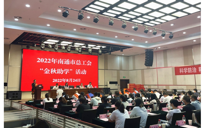 2022年8月24日下午,南通市總工會舉行2022年“工會在身邊·助圓學子夢”金秋助學活動,為困難家庭學生代表發(fā)放金秋助學金,真情關(guān)心關(guān)愛困難家庭子女,助力渴望求學的莘莘學子成才夢想。
